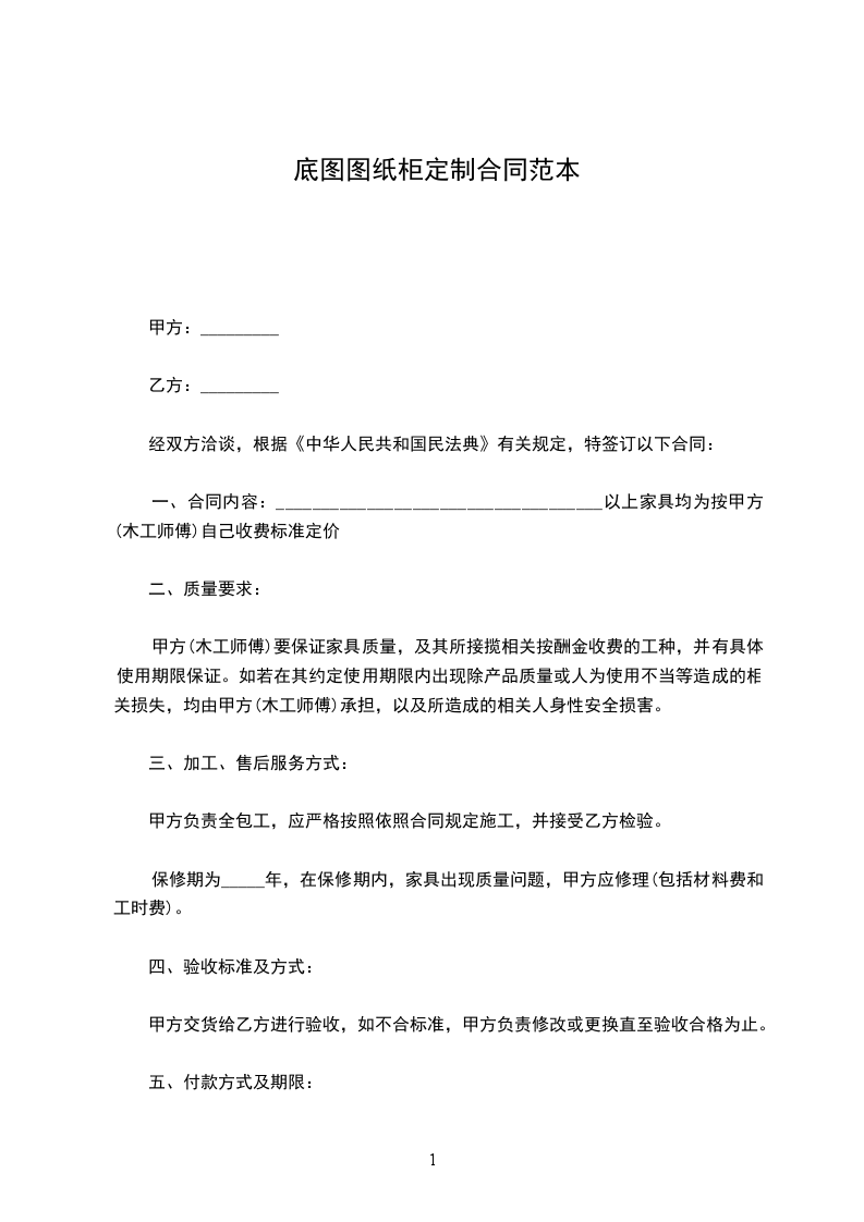 一、合同内容:____________________________________以上家具均为按甲方(木工师傅)自己收费标准定价