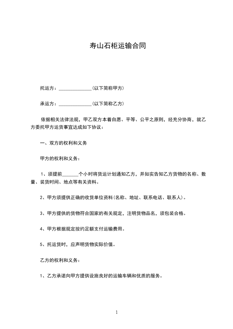 托运方:______________(以下简称甲方)