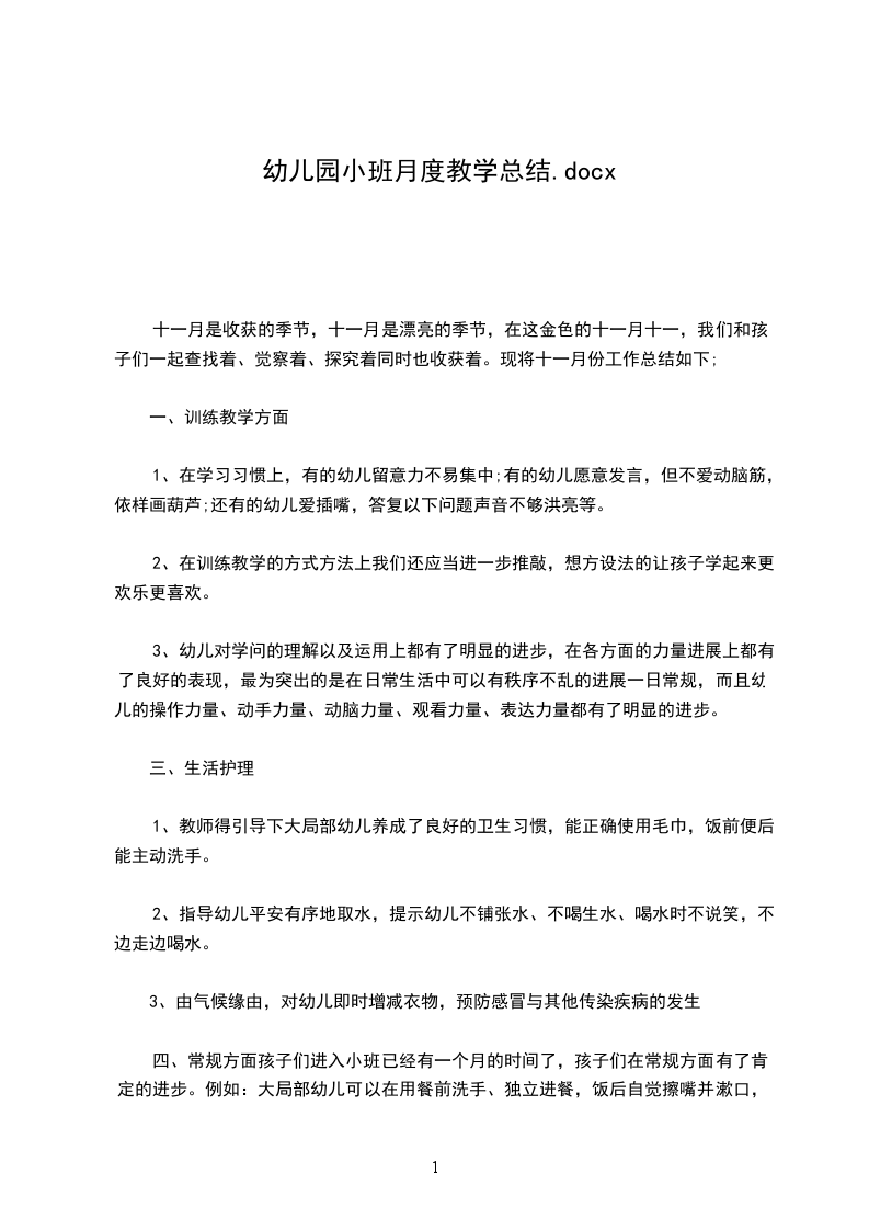 十一月是收获的季节,十一月是漂亮的季节,在这金色的十一月十一,我们和孩子们一起查找着、觉察着、探究着同时也收获着。现将十一月份工作总结如下;