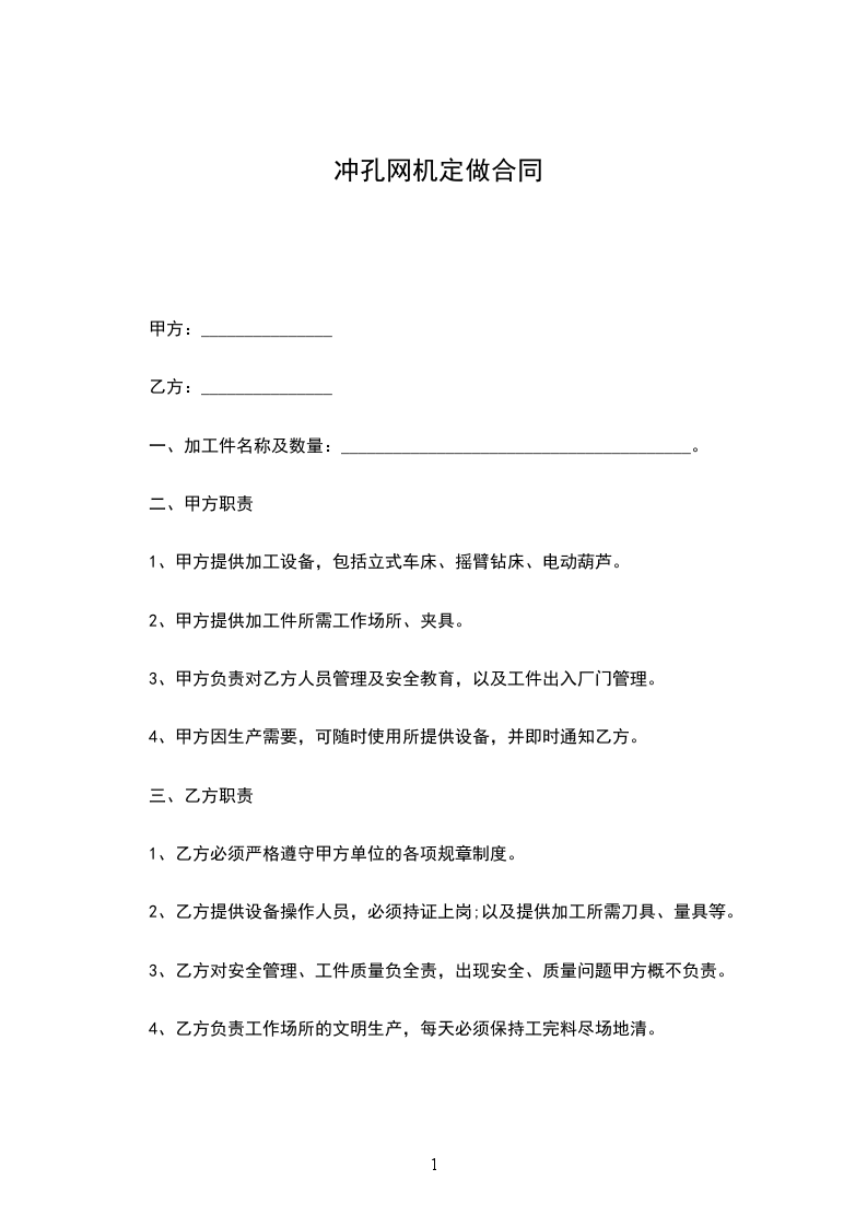 2、甲方提供加工件所需工作场所、夹具。