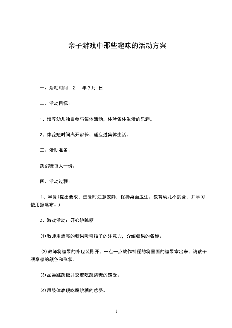 7.活动结束,农场供应薄荷、薰衣草、波斯菊等盆景作为活动嘉奖。 亲子趣味嬉戏活动方案3 活动目的:目前,在家庭训练中,亲子互动往往被爸爸妈妈所忽视。这对 亲密亲子关系和促进孩子身心健康进展是极大的损失。为了关心家进步一步学习亲子嬉戏的方式、方法,我广场打算开展亲子运动会来为孩子们带来一份美妙的回忆。 活动主题:大手牵小手,你我共成长 活动时间:2024年10月1日 活动场地:_商业广场中心 活动目标:
