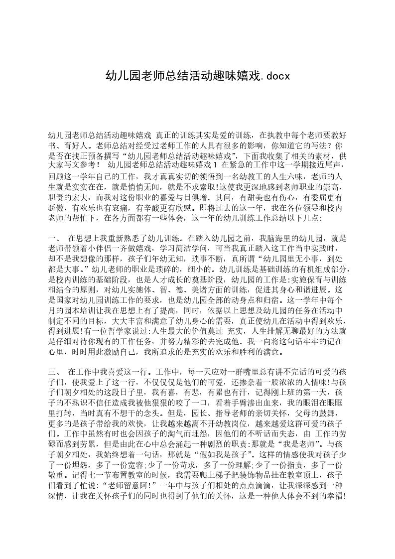 一、 活动目的:让老师在嬉戏活动过程中缓解
