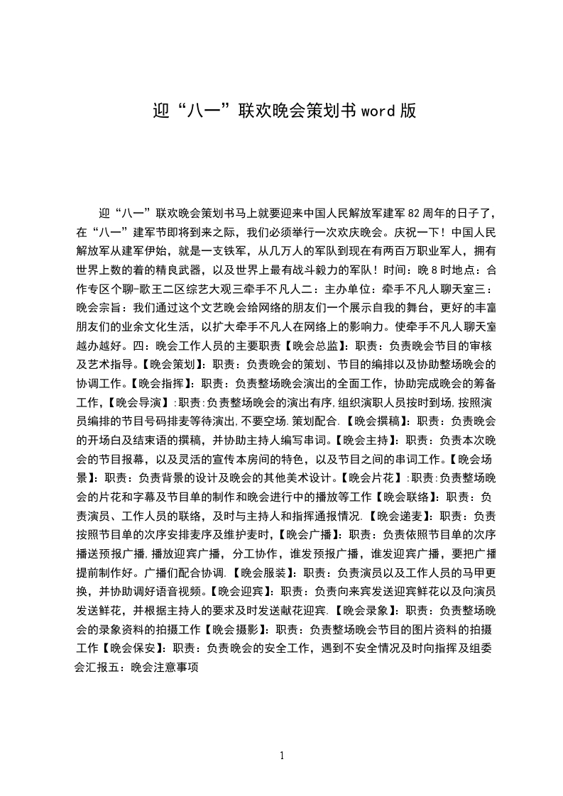 时间:__年7月31日晚8时地点:合作专区个聊-歌王二区综艺大观三牵手不凡人二:主办单位:牵手不凡人聊天室三:晚会宗旨:我们通过这个文艺晚会给网络的朋友们一个展示自我的舞台,更好的丰富朋友们的业余文化生活,以扩大牵手不凡人在网络上的影响力。使牵手不凡人聊天室越办越好。四:晚会工作人员的主要职责