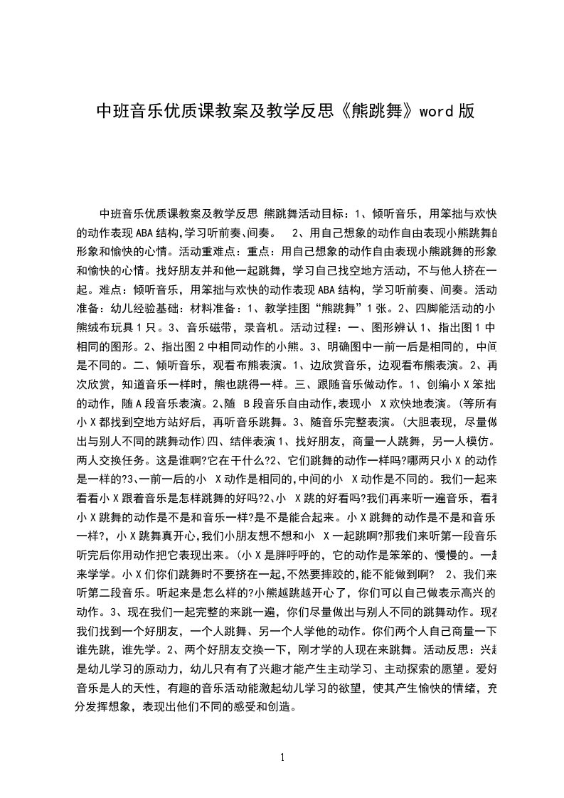 1、小熊跳舞的动作是不是和音乐一样?小熊跳舞真开心,我们小朋友想不想和小熊一起跳啊?那我们来听第一段音乐,听完后你用动作把它表现出来。(小X是胖呼呼的,它的动作是笨笨的、慢慢的。)一起来学学。小X们你们跳舞时不要挤在一起,不然要摔跤的,能不能做到啊?