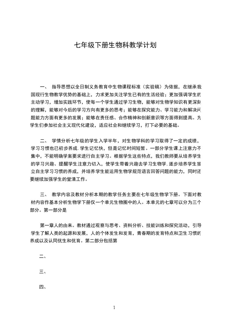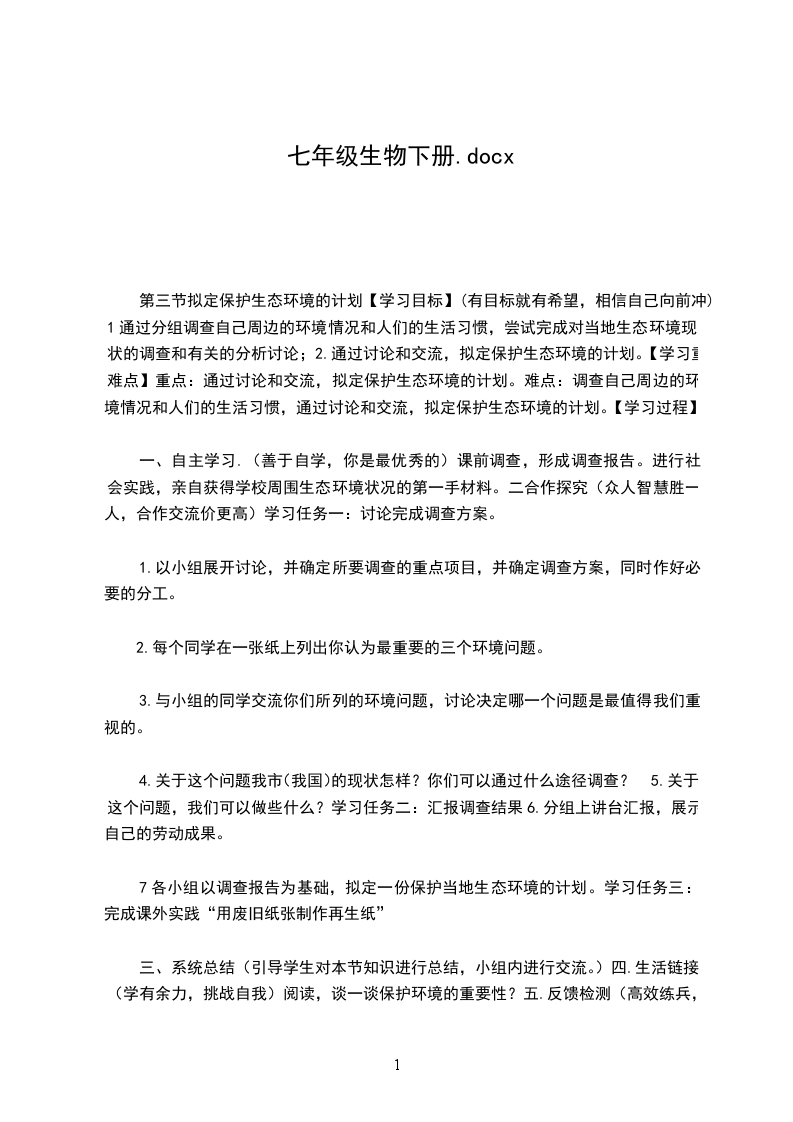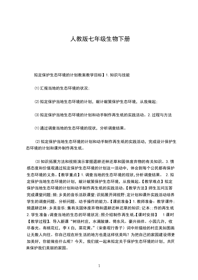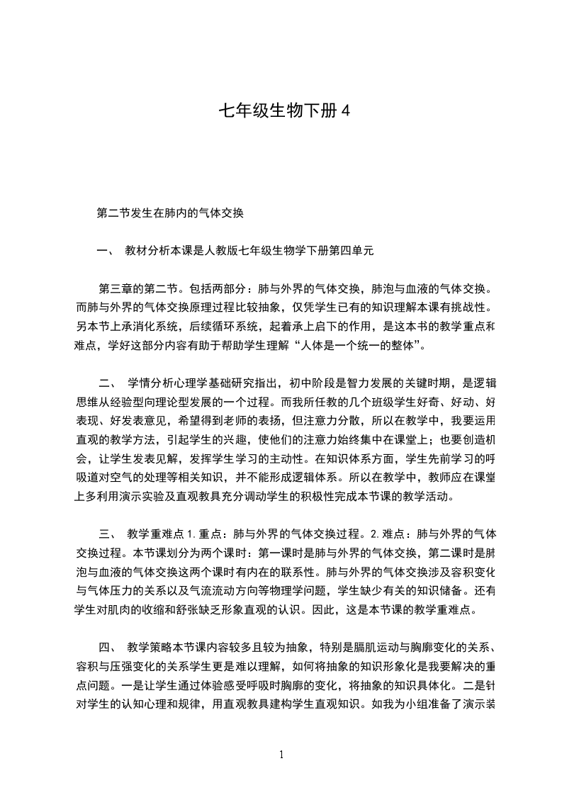 一、 教材分析本课是人教版七年级生物学下册第四单元