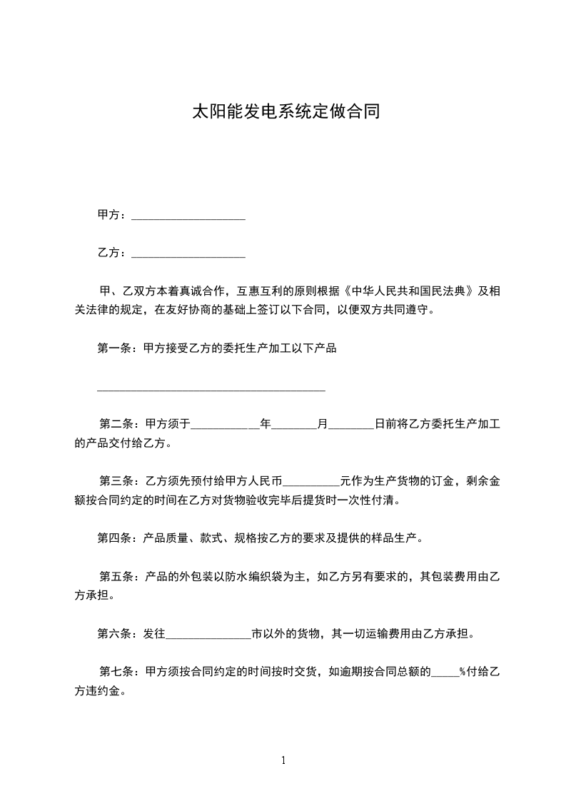 第一条:甲方接受乙方的委托生产加工以下产品
