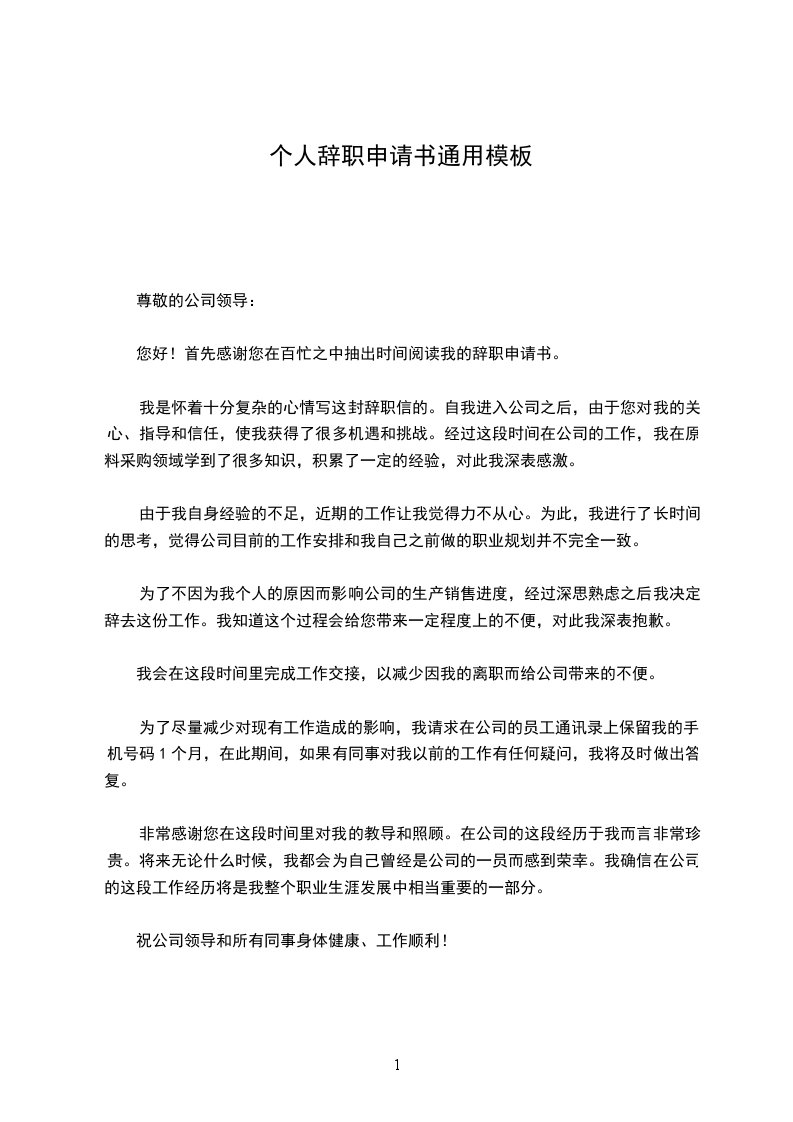 因此本人因为个人原因,决定离开已经服务多年的_______公司。请求领导批准。