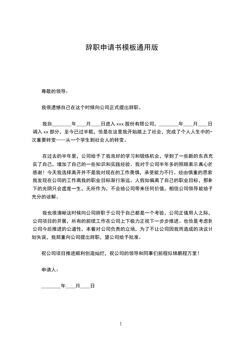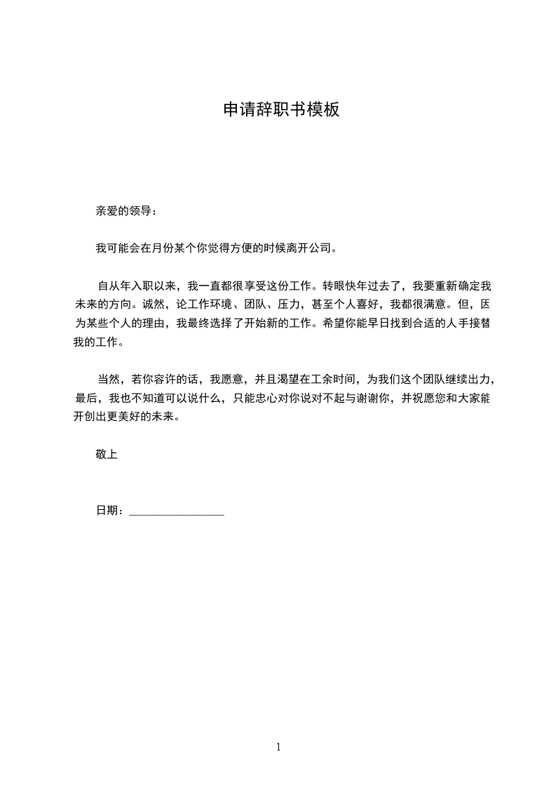 尊敬的__________领导: