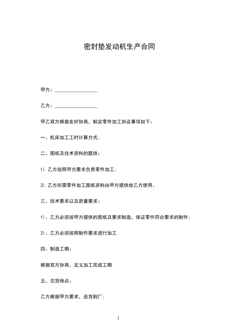 二手密封垫发动机运输合同