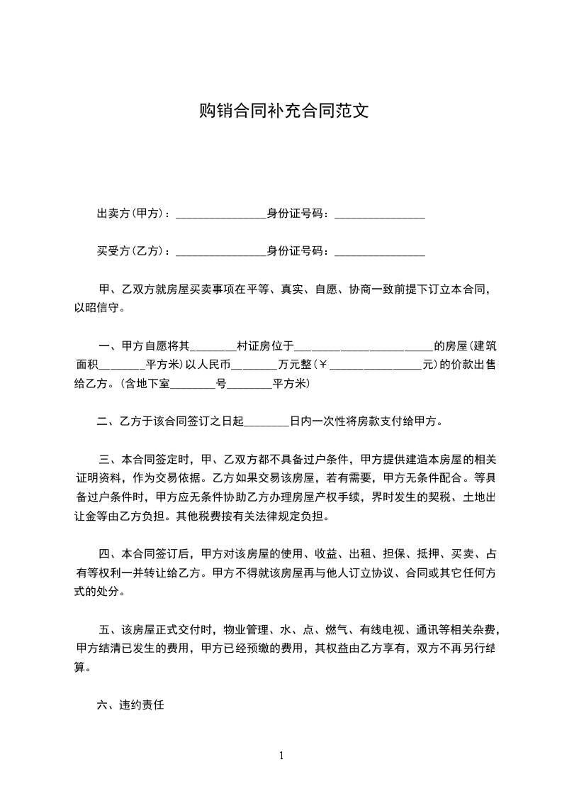 一、甲方自愿将其________村证房位于________________________的房屋(建筑面积________平方米)以人民币________万元整(¥________________元)的价款出售给乙方。(含地下室________号________平方米)