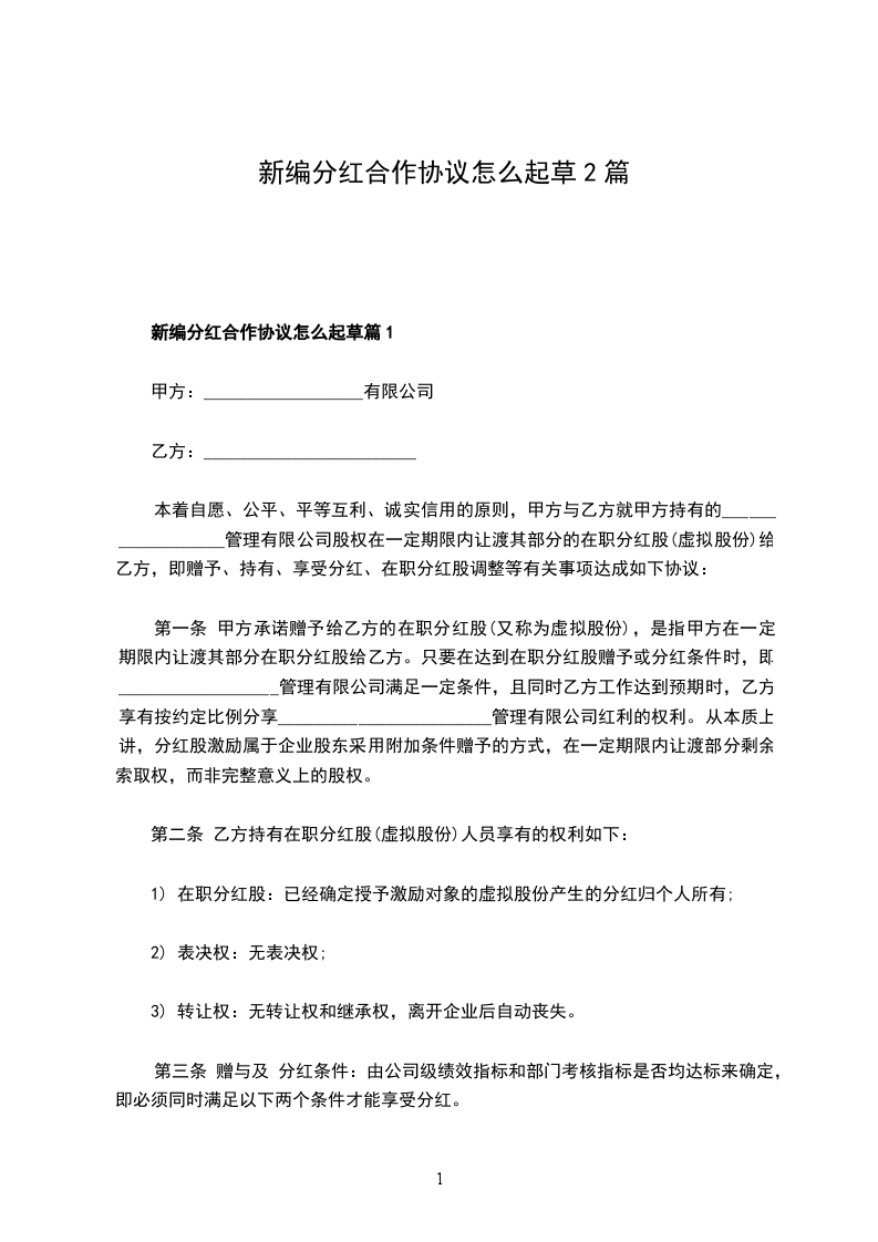 新编分红合作协议怎么起草篇1
