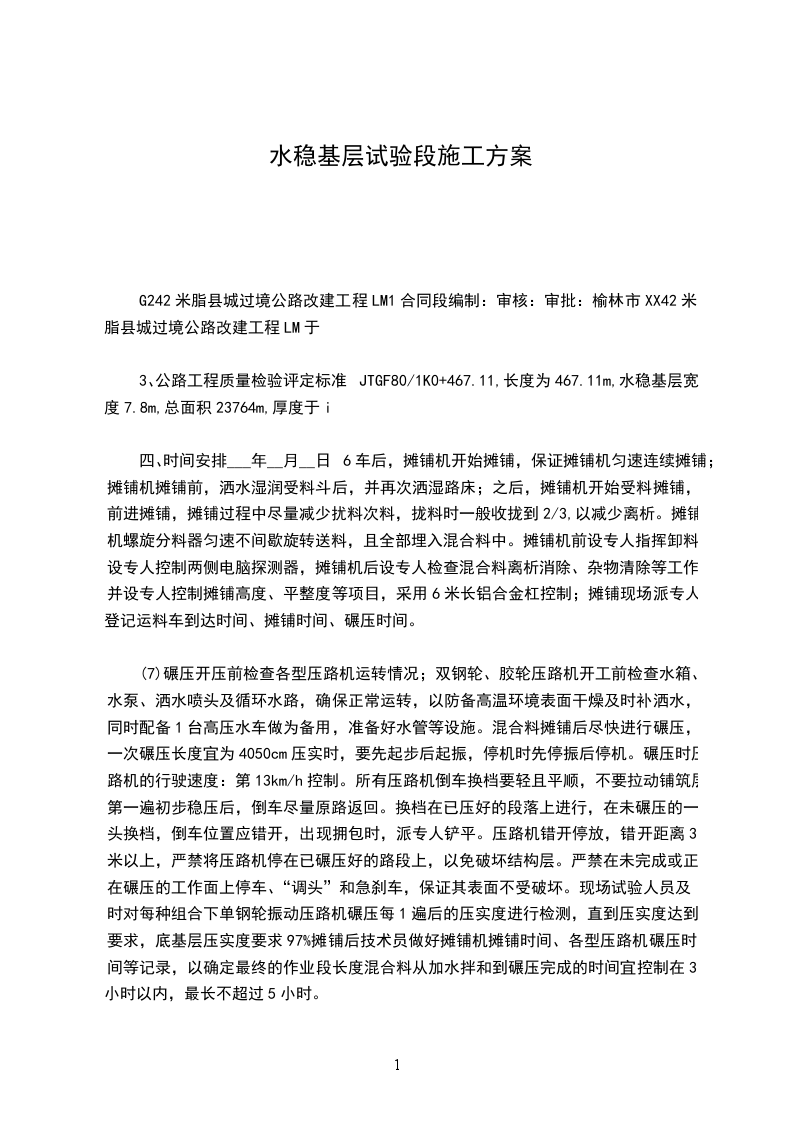 G242米脂县城过境公路改建工程LM1合同段编制:审核:审批:榆林市XX42米脂县城过境公路改建工程LM于