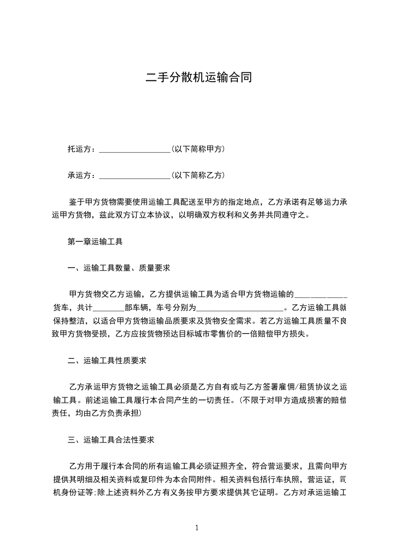 承运方:__________________(以下简称乙方)