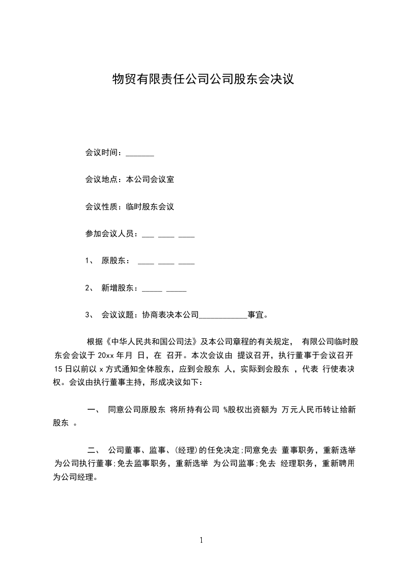 一、 同意公司原股东 将所持有公司 %股权出资额为 万元人民币转让给新股东 。