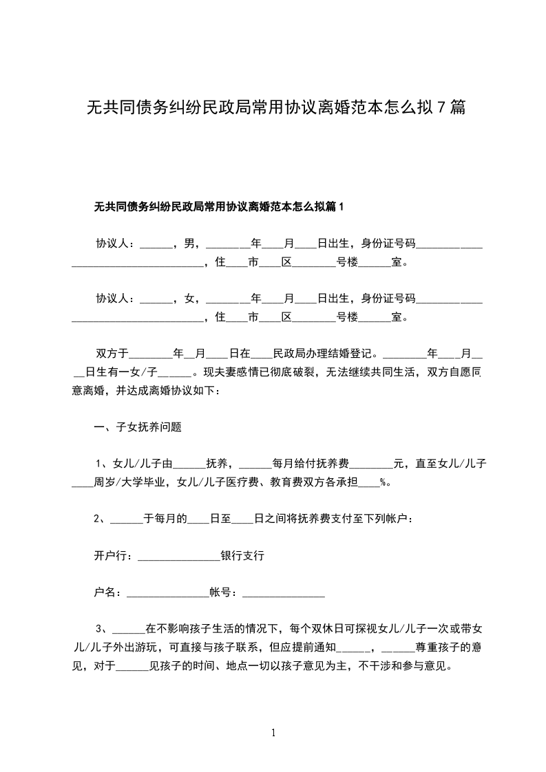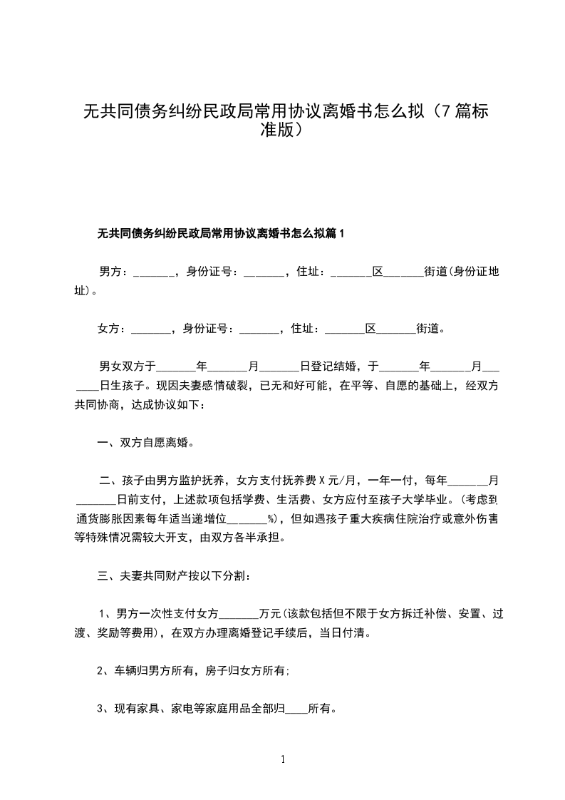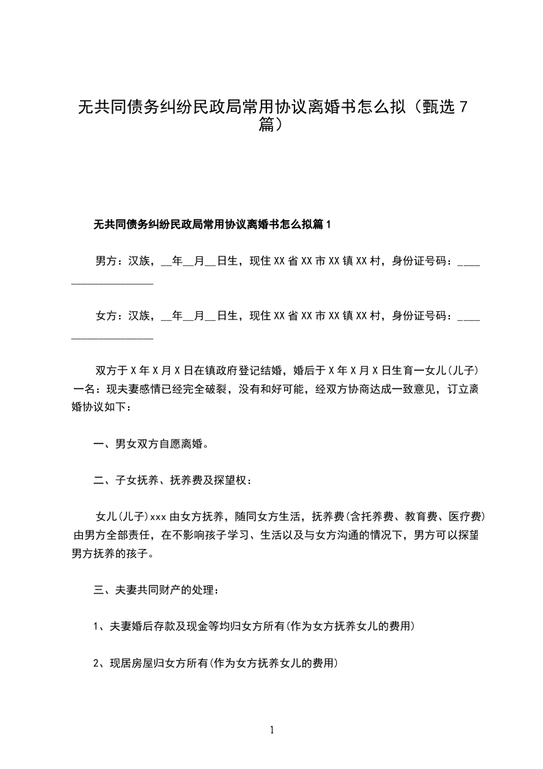 无债务纠纷民政局常用协议离婚范本怎么拟篇7