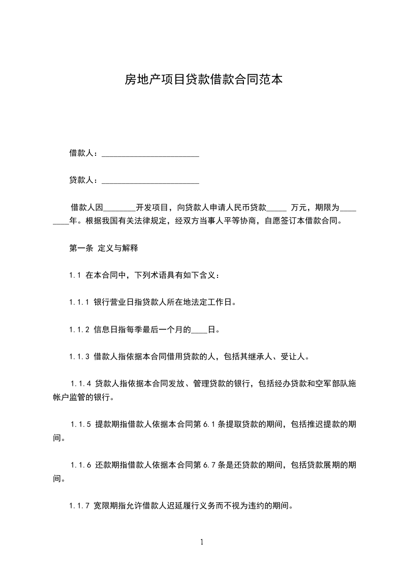 借款人因________开发项目,向贷款人申请人民币贷款_____ 万元,期限为________年。根据我国有关法律规定,经双方当事人平等协商,自愿签订本借款合同。