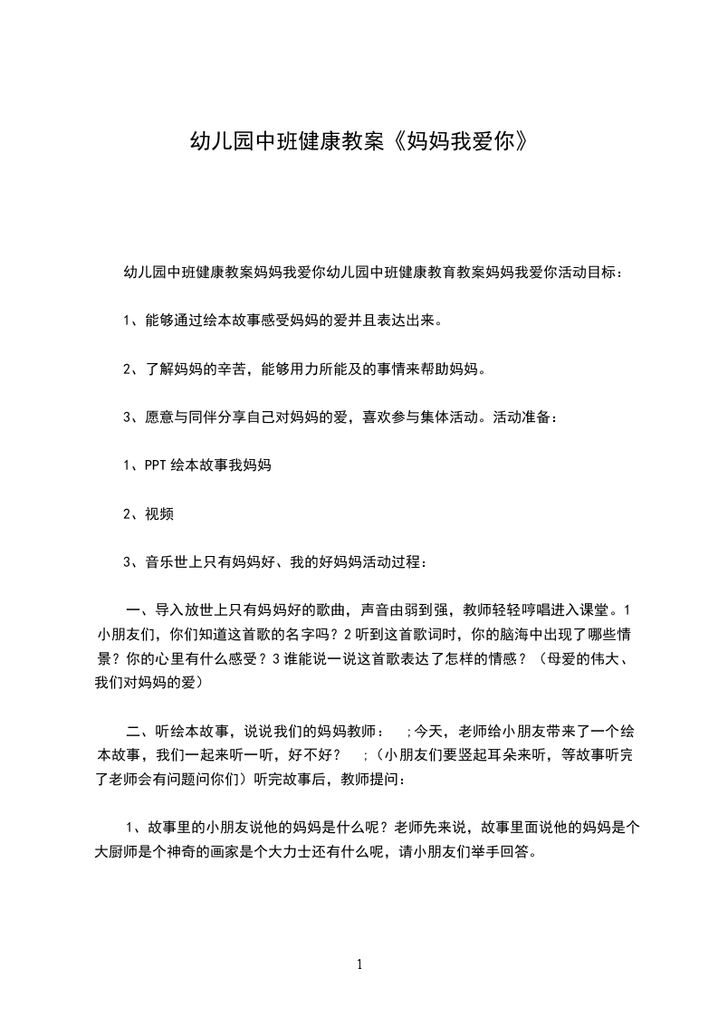 幼儿园中班健康教案妈妈我爱你幼儿园中班健康教育教案妈妈我爱你活动目标:
