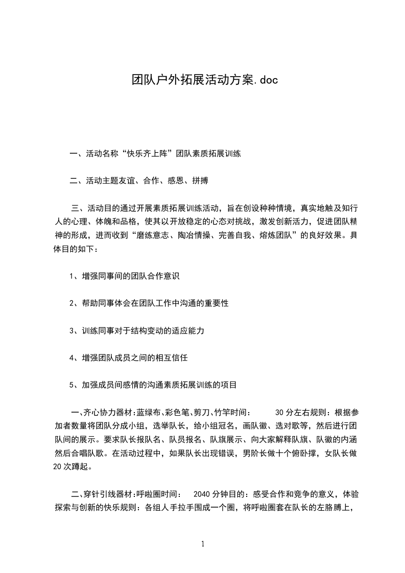 一、活动名称“快乐齐上阵”团队素质拓展训练