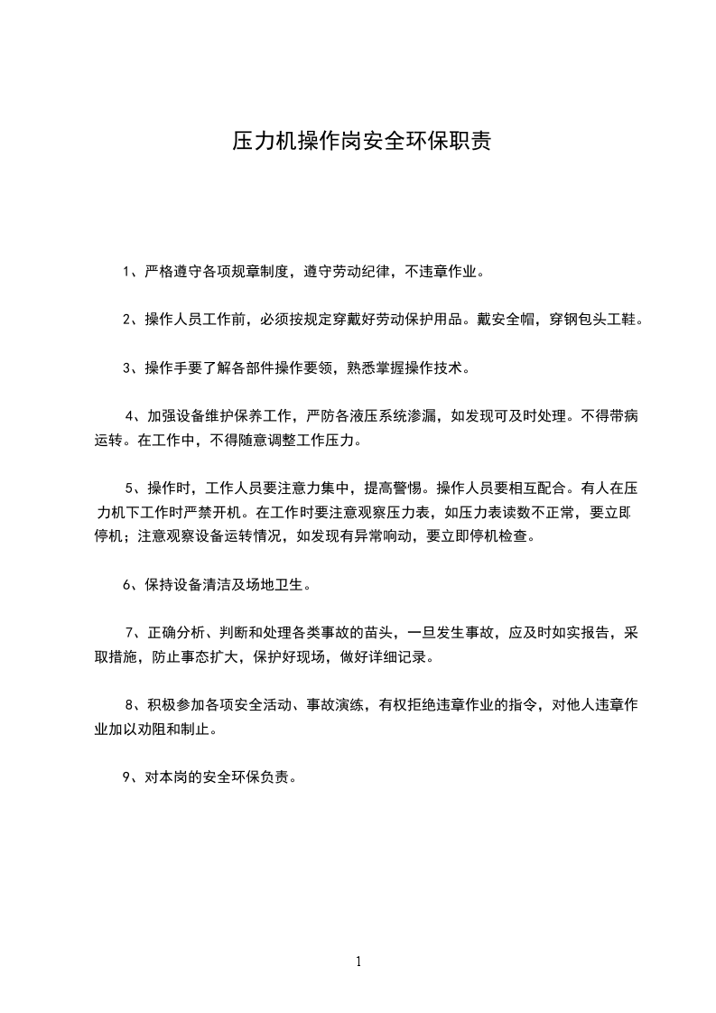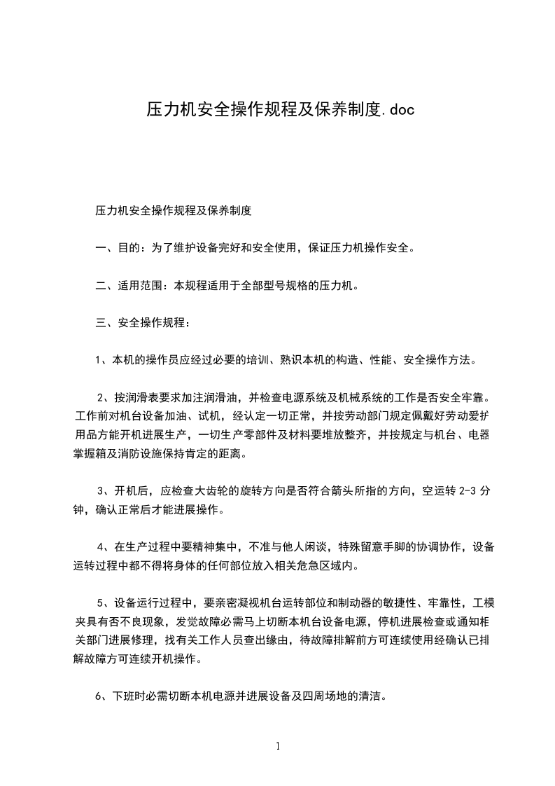 一、目的:为了维护设备完好和安全使用,保证压力机操作安全。