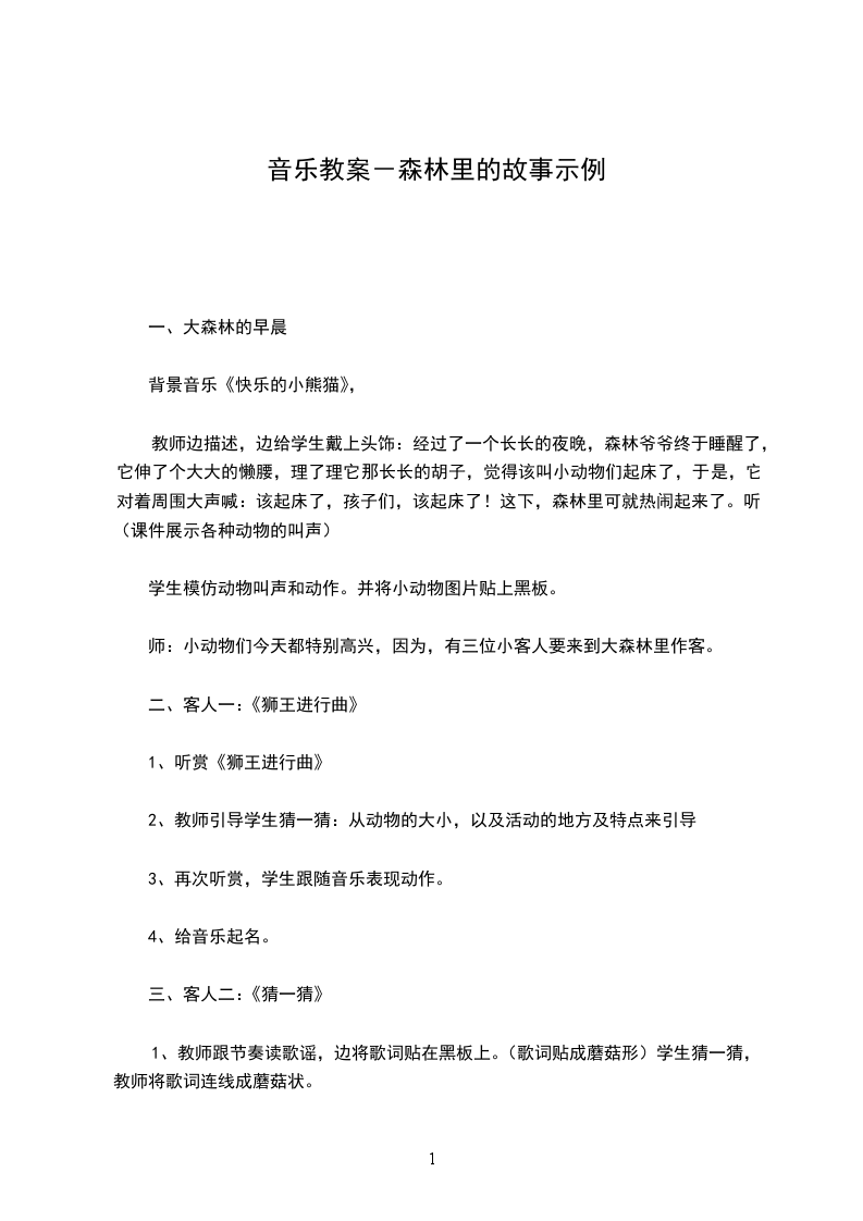 (四)完整欣播放录音完整欣故事。教学反思:我班幼儿好奇心强、富于想象,对周围世界的好奇和疑问无时无刻不在产生。大部分幼儿思维活跃,部分幼儿富有个性,有自己独特的想法与见解。自开展“动手做,游戏乐”活动以来,大多数幼儿改变了以往独自或平行游戏的状态,同伴之间学会了商量、分工协作,合作意识明显增强,个性得到充分张扬,各方面能力有了较大提高。小百科:森林是以木本植物为主体的生物群落,是集中的乔木与其它植物、动物、微生物和土壤之间相互依存相互制约,并与环境相互影响,从而形成的一个生态系统的总体。它具有丰富的物种,复杂的结构,多种多样的功能。