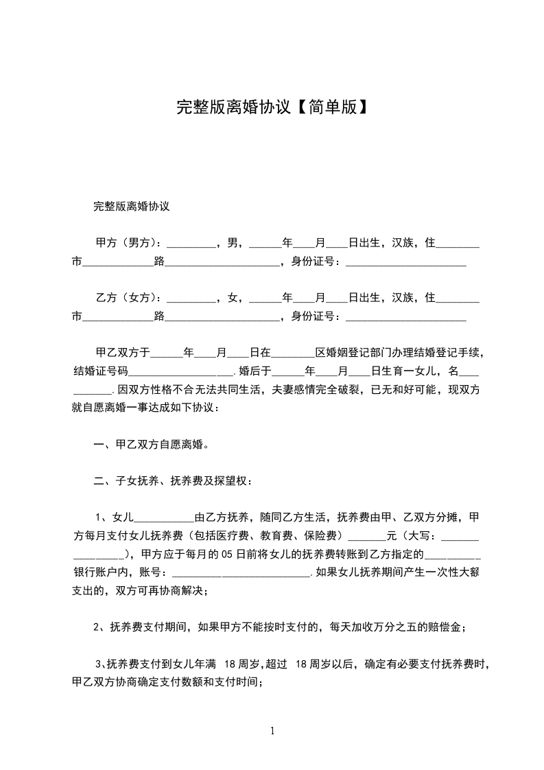 女方(以下简称乙方):___________________