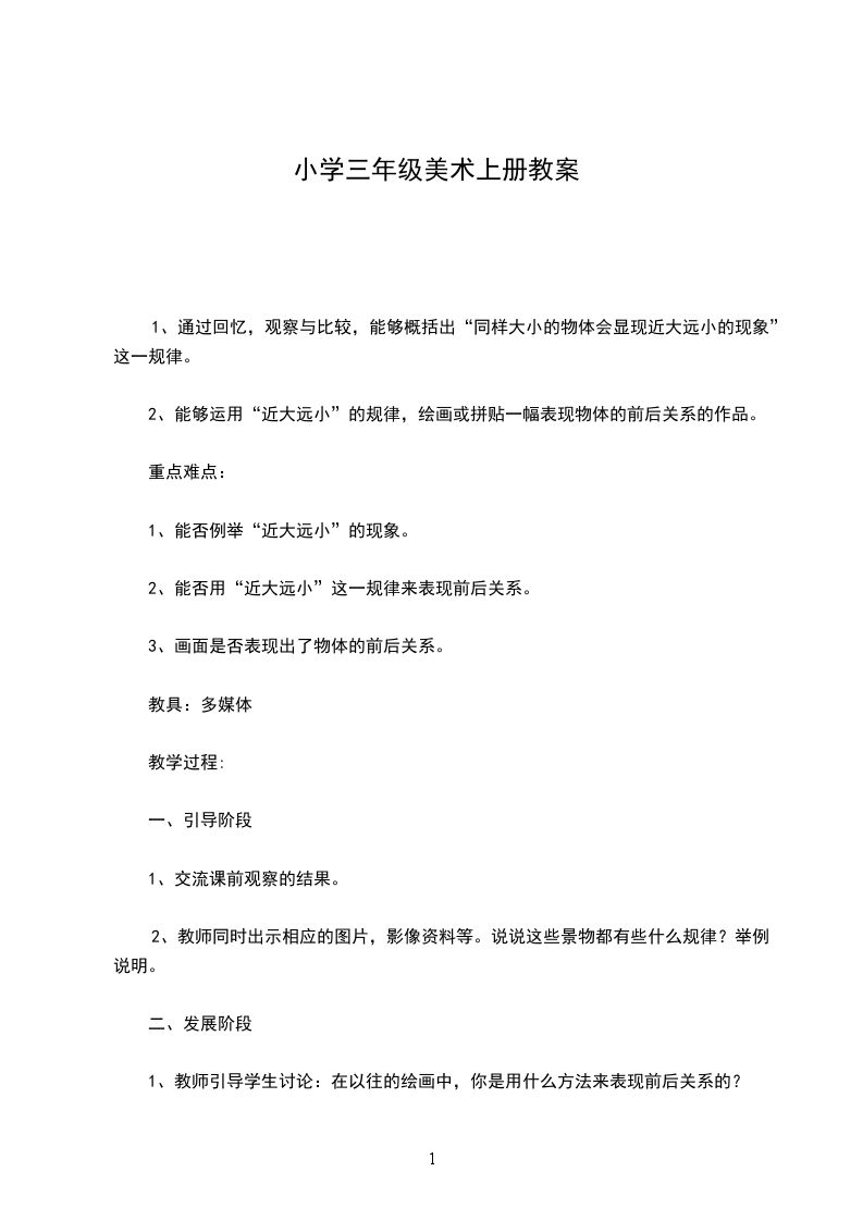 一、我的小天地教学目标:了解居室的特点和相关文化,我的小天地让学生能按照自己的心愿去表现和设计自己理想中的我的小天地,我的小天地从而提高学生的观察能力和表现能力,培养健康的审美情趣和创新意识。教学重点:通过了解有关居室设计的文化、习俗,加深自己身边居住环境的了解,唤起学生对美好生活的向往,用自己的双手去实现对美好生活的憧憬。教学难点:绘画时房间里的家具与家具之间、家具与周围环境之间、人与环境之间的前后、大小关系。课前准备:课件图片教学过程:我的小天地1:回忆与畅谈自己最喜欢的活动、学习、休息的场所或居室,并用自己喜欢的方式和材料表现其特点和自己的感情。2:运用回忆、讨论、交流各自最喜欢的场所,采取个人创作的方式进行表达.3:通过一系列的活动激发学生热爱生活的情感,并大胆表达自己的情感。引导观察回忆或想象自己小天地的摆设和特点用自己喜欢的方式表现自己记忆或想象中的小天地。图片或录象资料,凡高作品暖色的房间,实物投影,照片、绘画工具和材料等。教学活动设计: