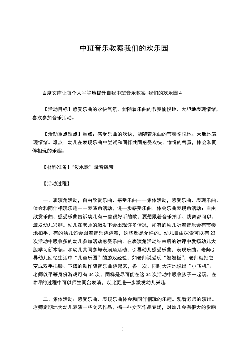 百度文库让每个人平等地提升自我中班音乐教案:我们的欢乐园4