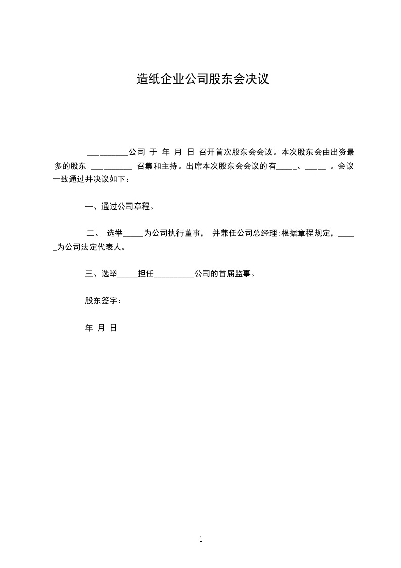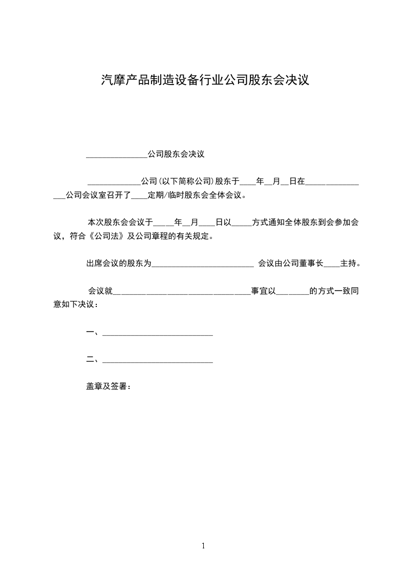 股东会决议主持人:_______________