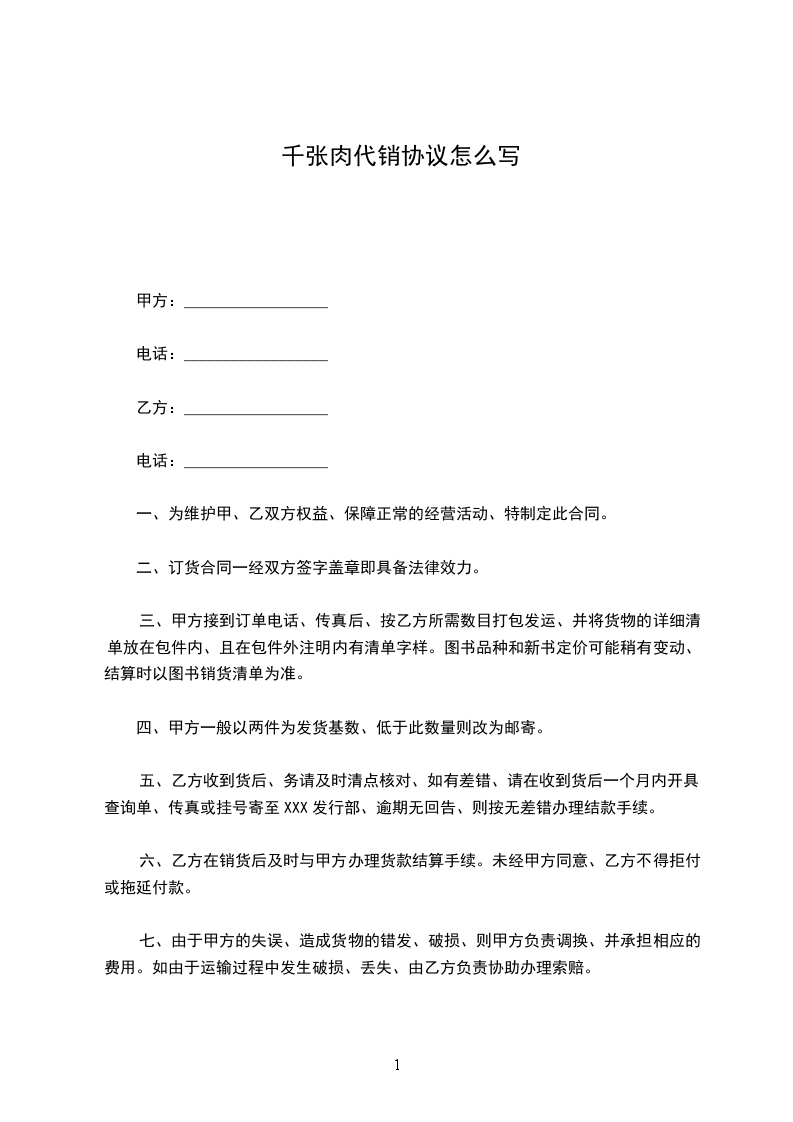 千张肉销售合同