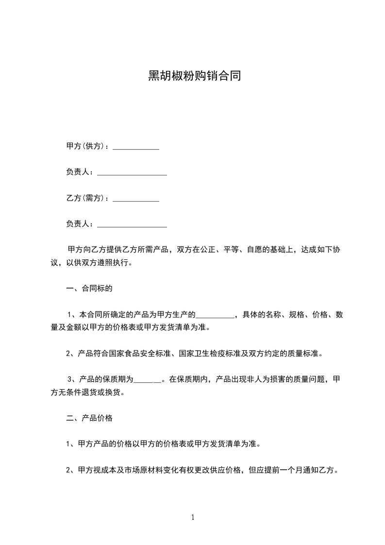 1、本合同所确定的产品为甲方生产的__________,具体的名称、规格、价格、数量及金额以甲方的价格表或甲方发货清单为准。