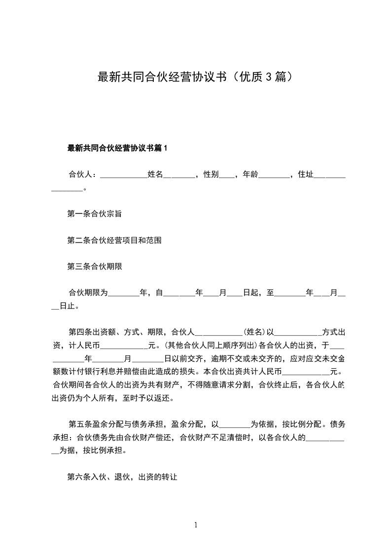 根据《中华人民共和国民法典》及其他有关法律、法规之规定,甲乙双方在平等、自愿、协商一致的基础上,就___________________________________合伙经营有关事宜达成如下协议:
