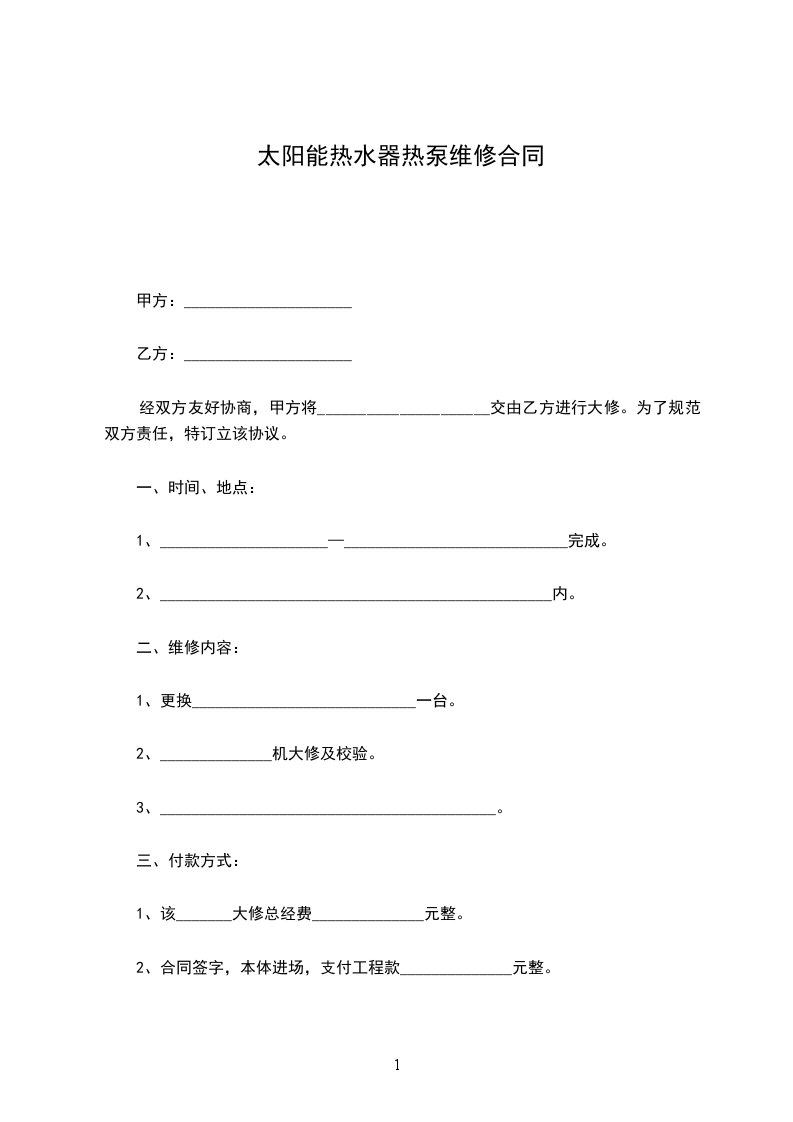 太阳能热水器热泵维修合同