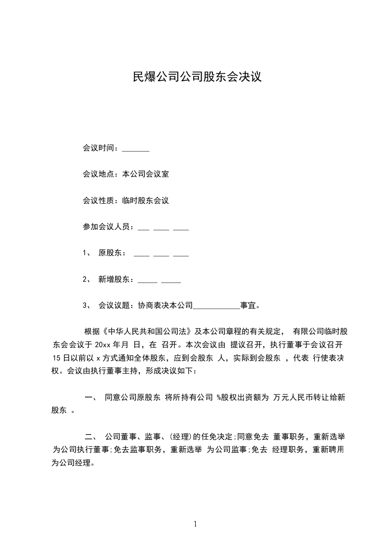 根据《公司法》及公司章程,_______________有限公司于_____年_____月_____日以(书面等)形式通知了公司全体股东在_____年_____月_____日(地点)召开股东会,出席本次会议的股东共_____人,代表公司股东_____%的表决权;未出席本次会议的股东共人,代表公司股东%的表决权。所作出决议经公司股东表决权的%通过,弃权或反对的占股东表决权的%,符合《公司法》及公司章程。决议事项如下: