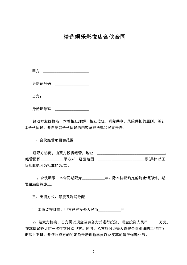 3、合伙期限:本次合伙期限为____年,以__________________租赁合同期限为准。合同到期,合伙人同意合伙续租,没有另签合伙协议时,按本协议继续执行。