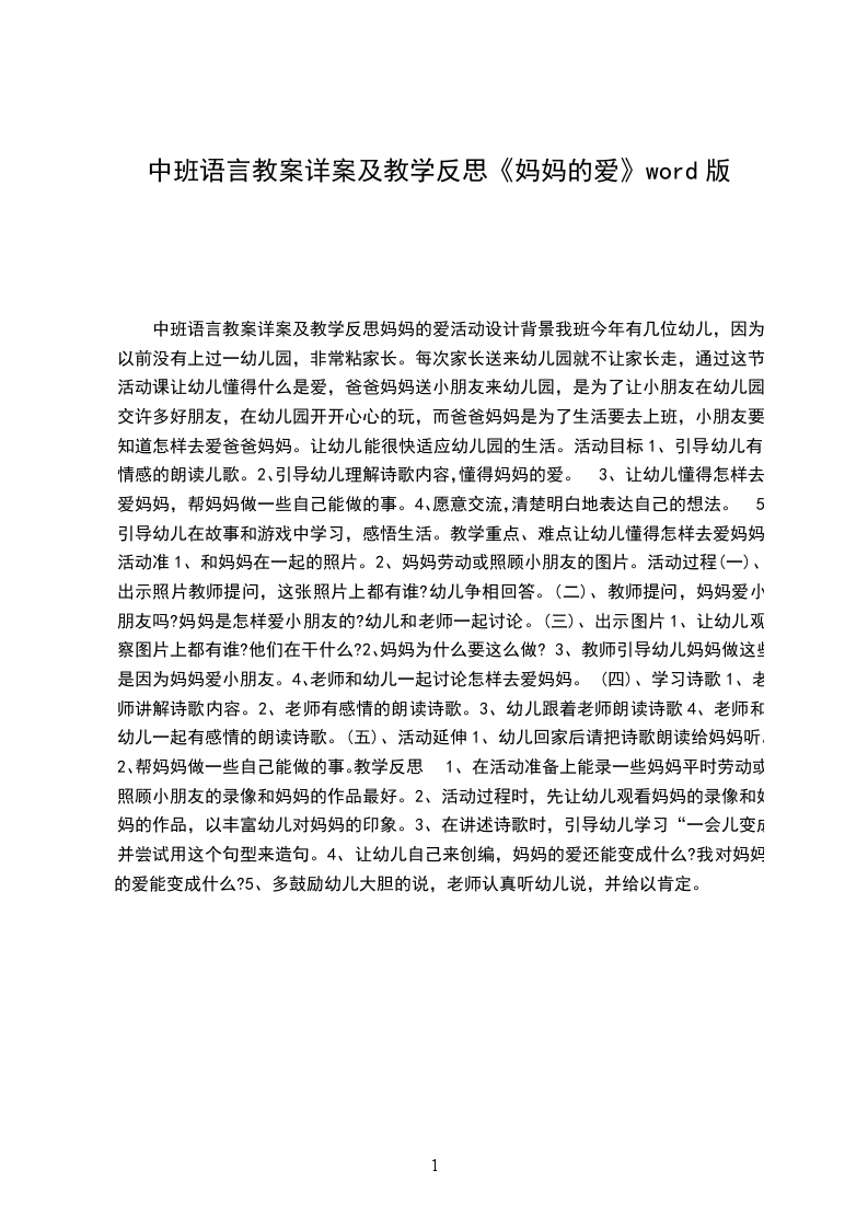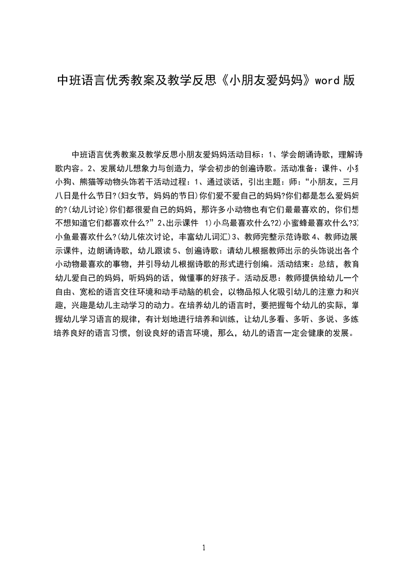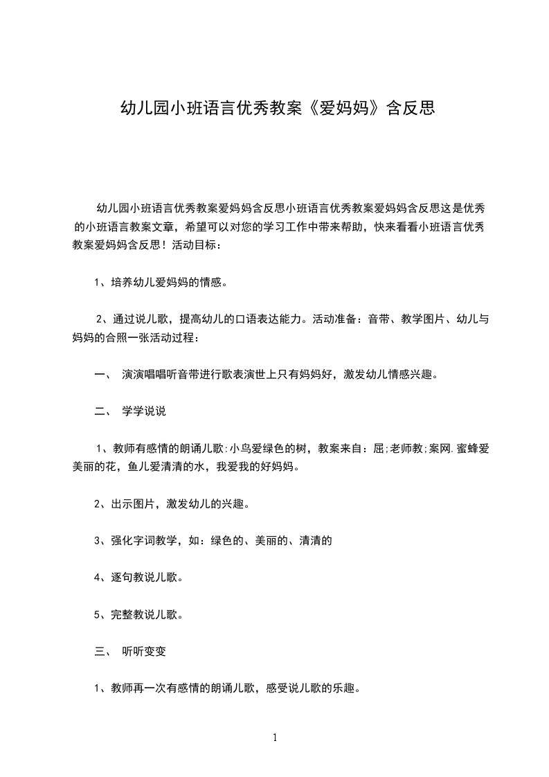 幼儿园小班语言优秀教案爱妈妈含反思小班语言优秀教案爱妈妈含反思这是优秀的小班语言教案文章,希望可以对您的学习工作中带来帮助,快来看看小班语言优秀教案爱妈妈含反思!活动目标: