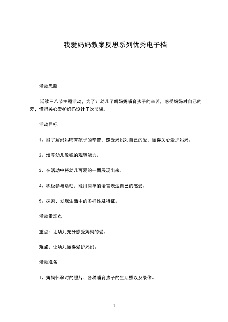 1、培养幼儿爱妈妈的情感。