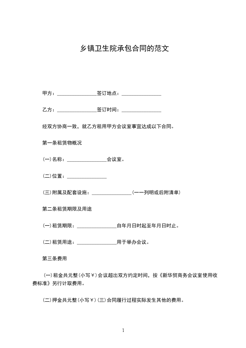 (一)租金共元整(小写¥)会议超出双方约定时间,按《新华贸商务会议室使用收费标准》另行计取费用。