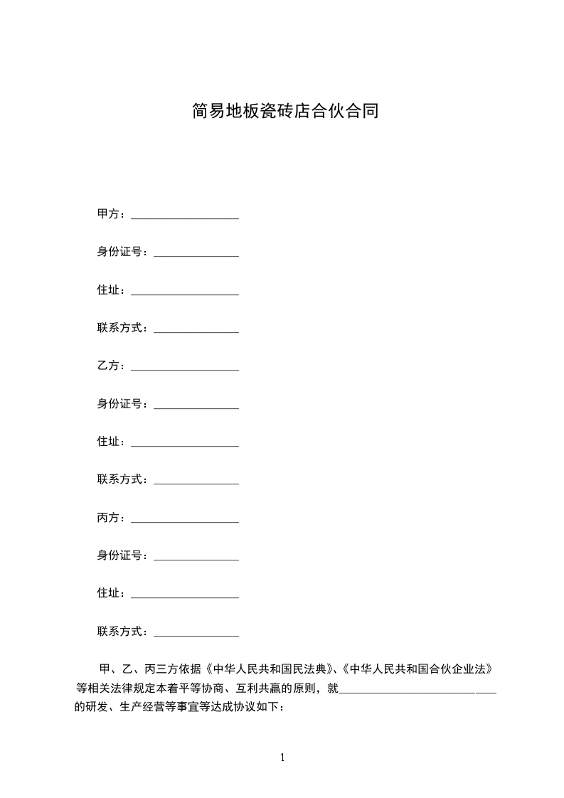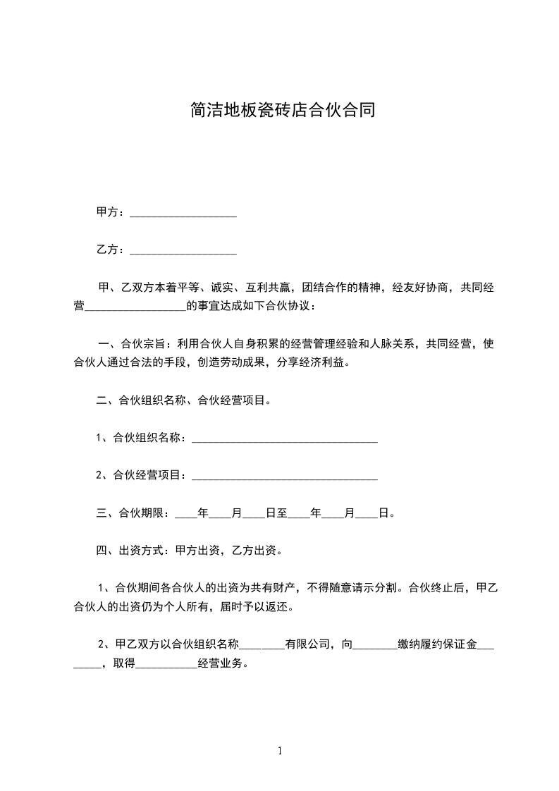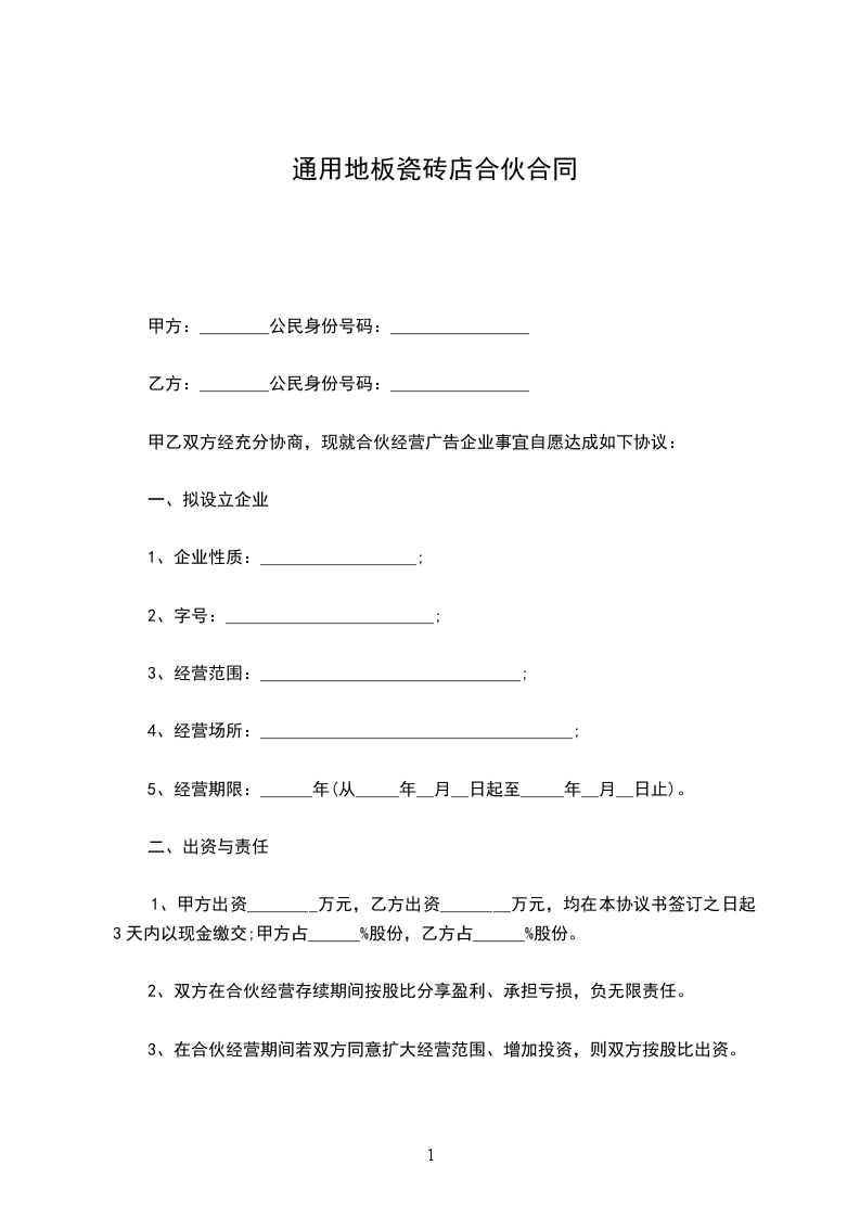经双方考查认定合伙开设,在平等,自愿、互利协商一致的基础上达成以下协议。