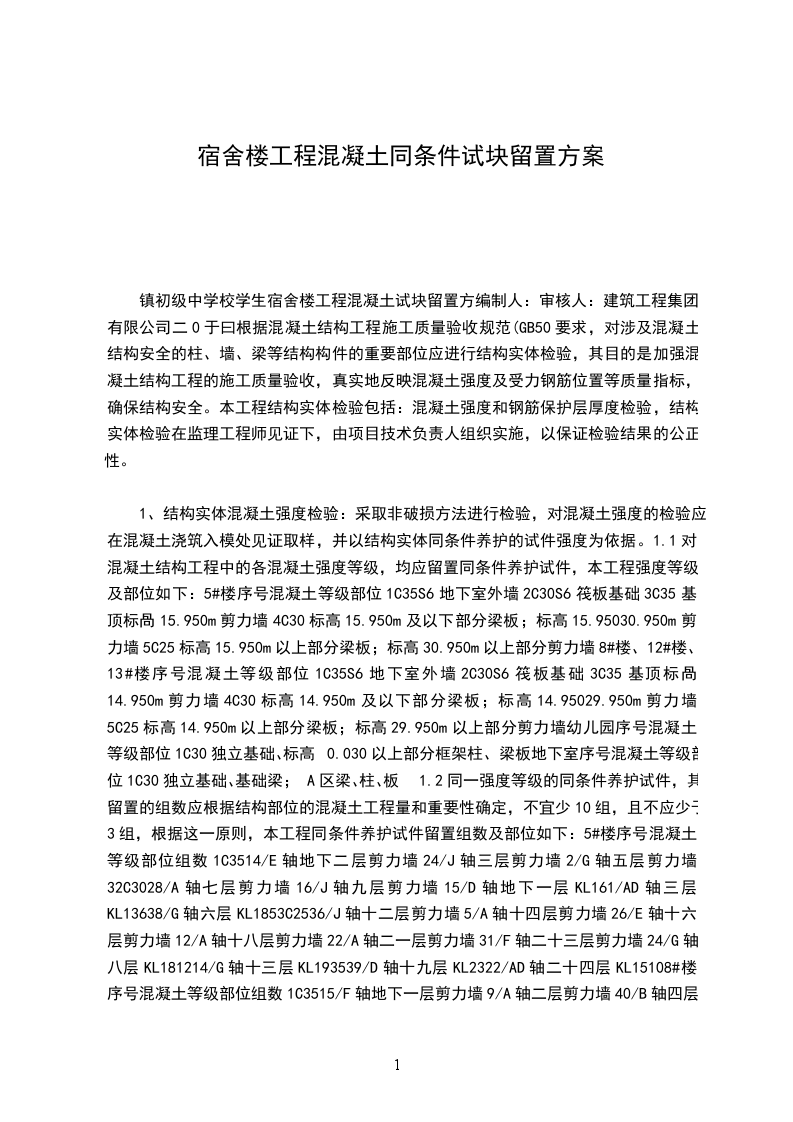 01座混凝土试块同条件养护留置方案、编制依据11施工图纸1.2主要规范、规程:混凝土工结构施工质量验收规范(GBSO02)建筑工程施工质量验收统一标准(GB50300于)