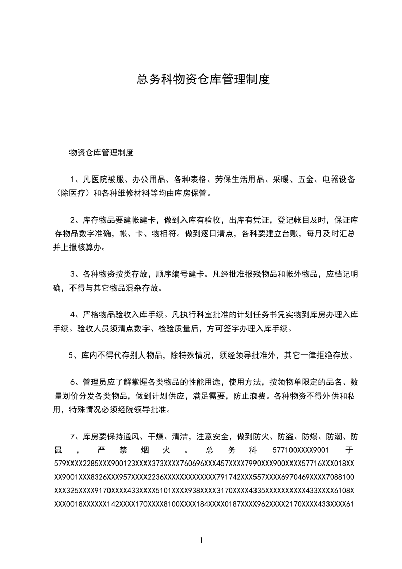 1、凡医院被服、办公用品、各种表格、劳保生活用品、采暖、五金、电器设备(除医疗)和各种维修材料等均由库房保管。