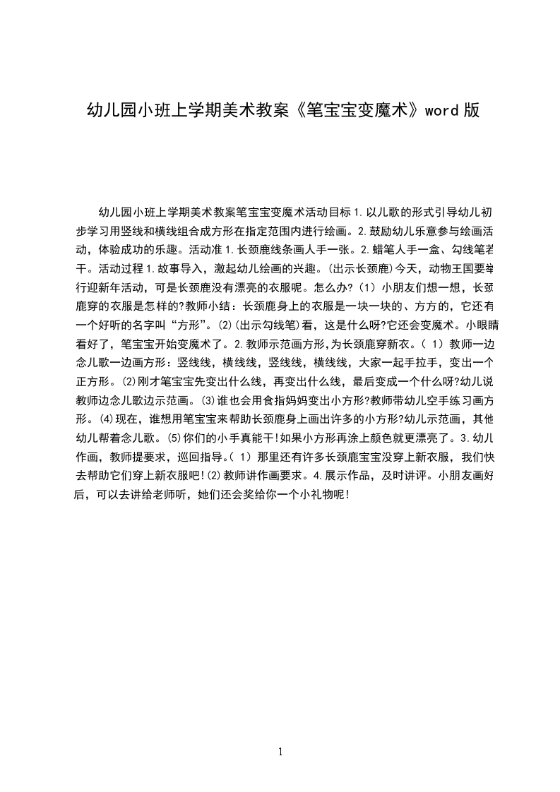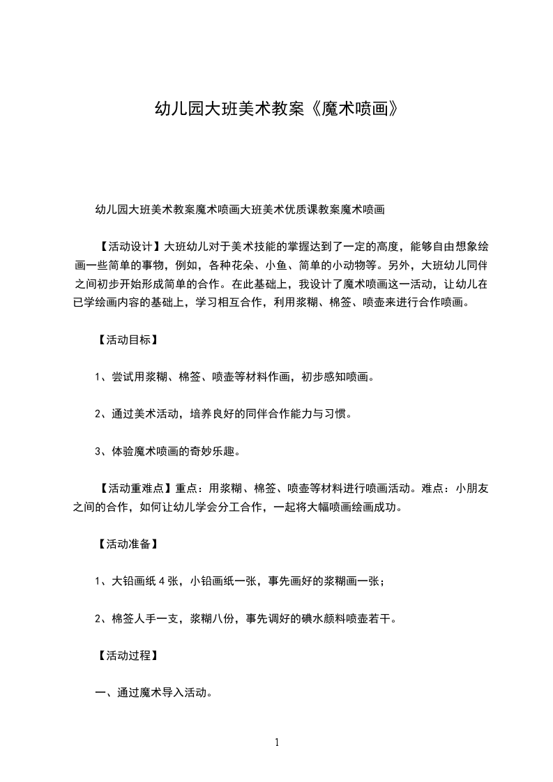 2、通过魔法游戏,让幼儿感受由小变大带来的快乐。活动准备:知识经验准备: