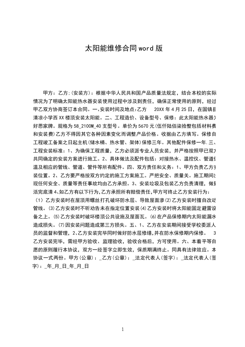 太阳能花维修合同
