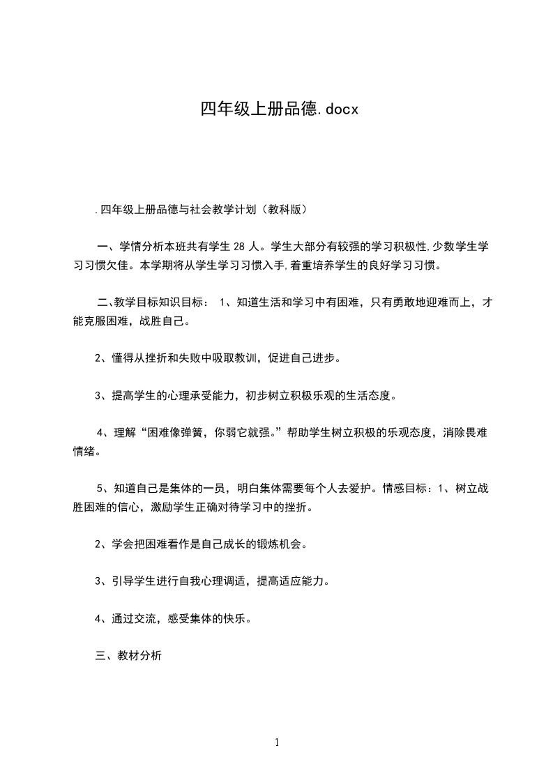 四、学生素质分析。本班学生学习自觉性较差,学生的思想行为各不相同,部分学生比较自私,团结协作精神差。学生的学习主动性也比较差,有些学生作业拖拉,字写得比较差。上课时,不爱动脑、动笔,需要不断督促。