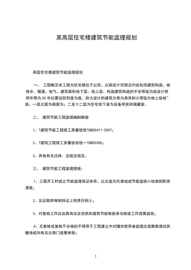 高层住宅楼建筑节能监理规划