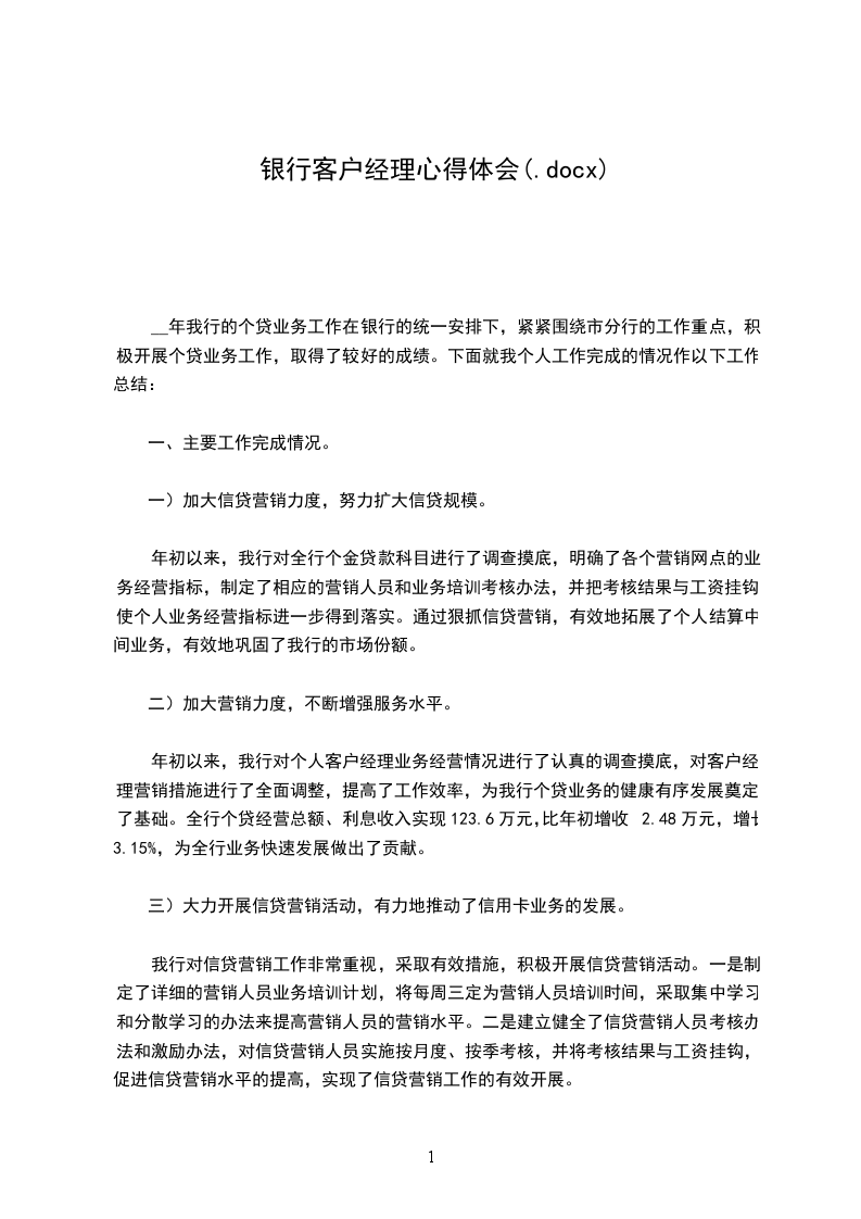 一、优质服务、廉洁遵守法律为职业道德规范标准。下面给大家分享一些关 银行客服工作总结,便利大家学习。 银行客服工作总结1 五年前,怀着对将来生活的美妙憧憬,怀着对工作的无限向往,我成为了一名_银行的一般员工,从那天起,在日复一日、年复一年迎来送往的平凡工作中,我不仅有对工作满腔热忱、更有颗追求完善的心,锲而不舍、韧劲十足地不断努力提高自己的专业技能和服务水平,以务实求真、一丝不苟的看法处理每一笔业务,以自然豁达、和善宽容的心境接待每一位客户,以团结互助、平和谦逊的姿势与领导同事一起为华夏银行的进展贡献自己的力气,从中我领会到了服务的魅力,体会到了什么叫“以客户为中心”的真正内涵,感受到了集体的暖和和力气,并以此得到了领导同事和客户的全都好评,银行从业人员工作总结。 我很庆幸自己能有这么好的工作环境和工作条件,同时也高标准严要求地给自己定下了工作目标:严格要求自己,不断努力提高自己的专业技能,不断扩充拓展自己的业务面,亲切快捷地为每一位顾客供应服务,成为一名基本功扎实、业务学问全面、服务规范从容的多面手。几年来的实践也使我真正理解了服务的真缔,理解了服务的内涵,深知只有平常勤练技能和苦钻业务学问,才能娴熟把握服务的技能规程,提高自身分析和处理问题的力量,不断提高服务和服务水平,从而实现“精准、高效、快捷”的服务理念,增加客户的满足度和忠诚度,从而赢得客户的信任,进而在激烈的市场竞争中赢得更多更好的业务。
