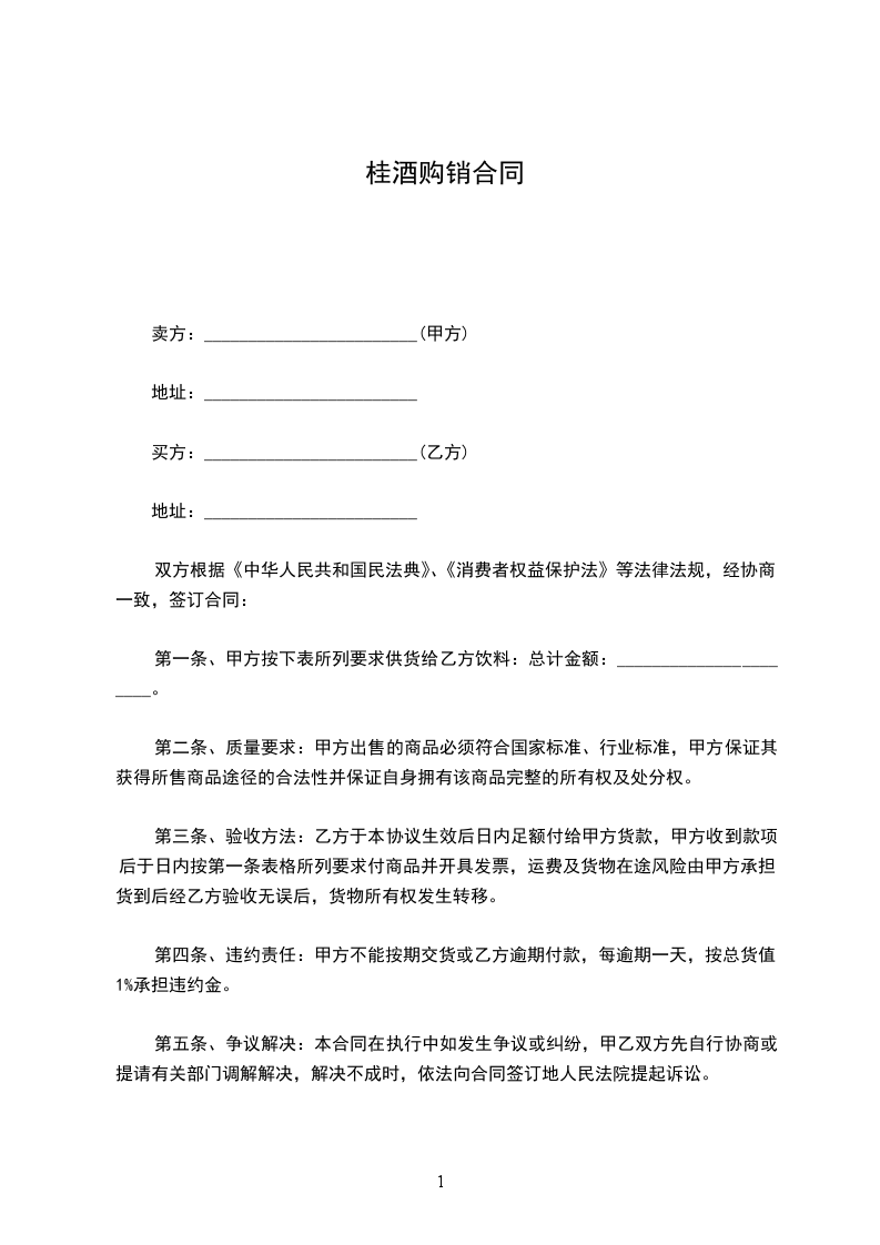 第一条、甲方按下表所列要求供货给乙方饮料:总计金额:______________________。