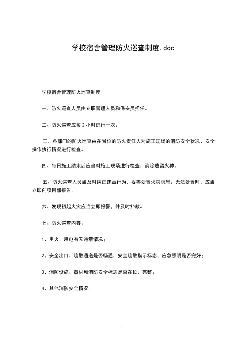 学校宿舍管理防火巡查制度