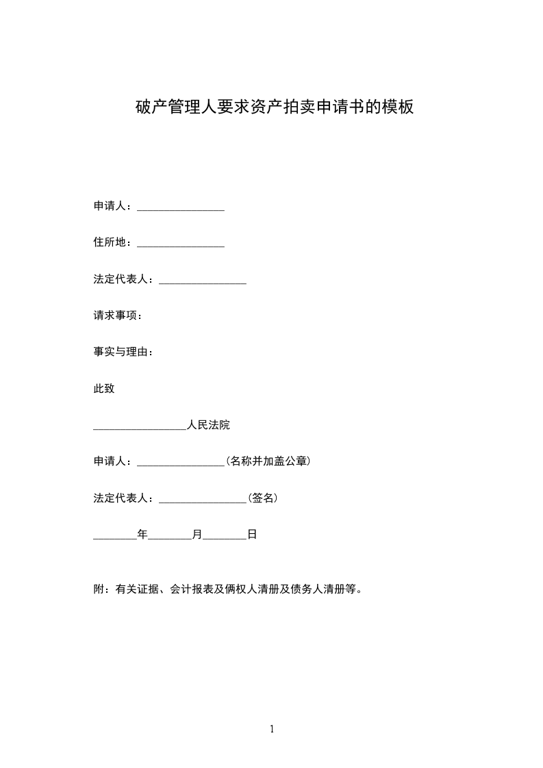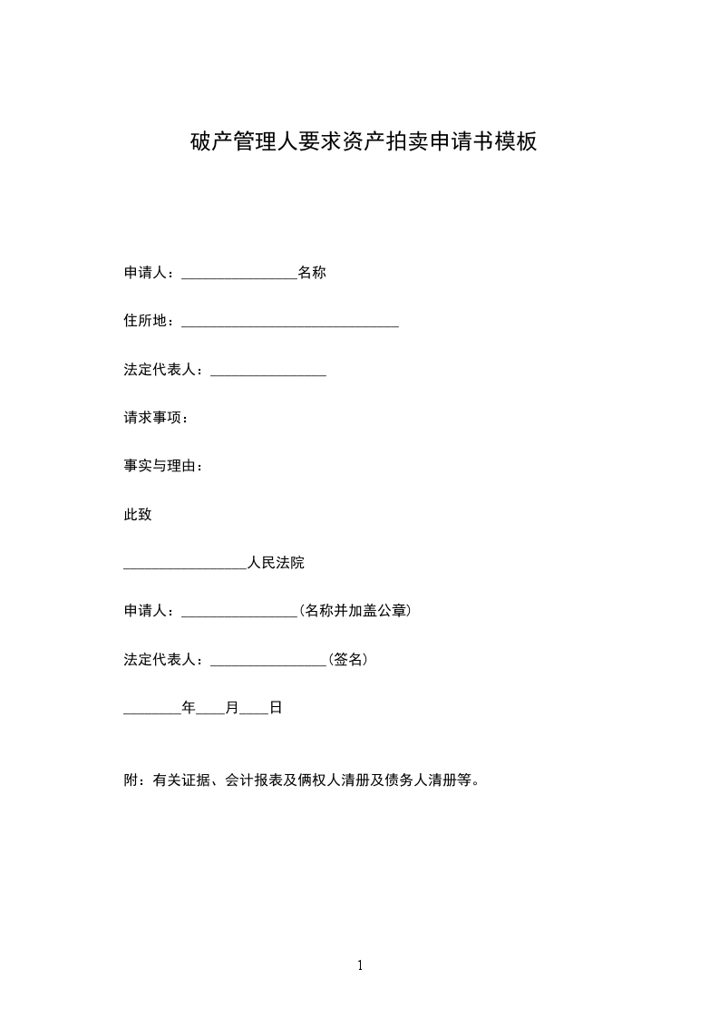 附:有关证据、会计报表及俩权人清册及债务人清册等。
