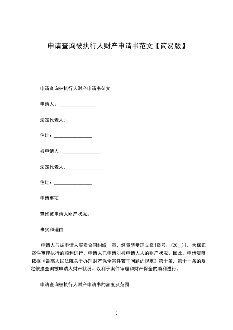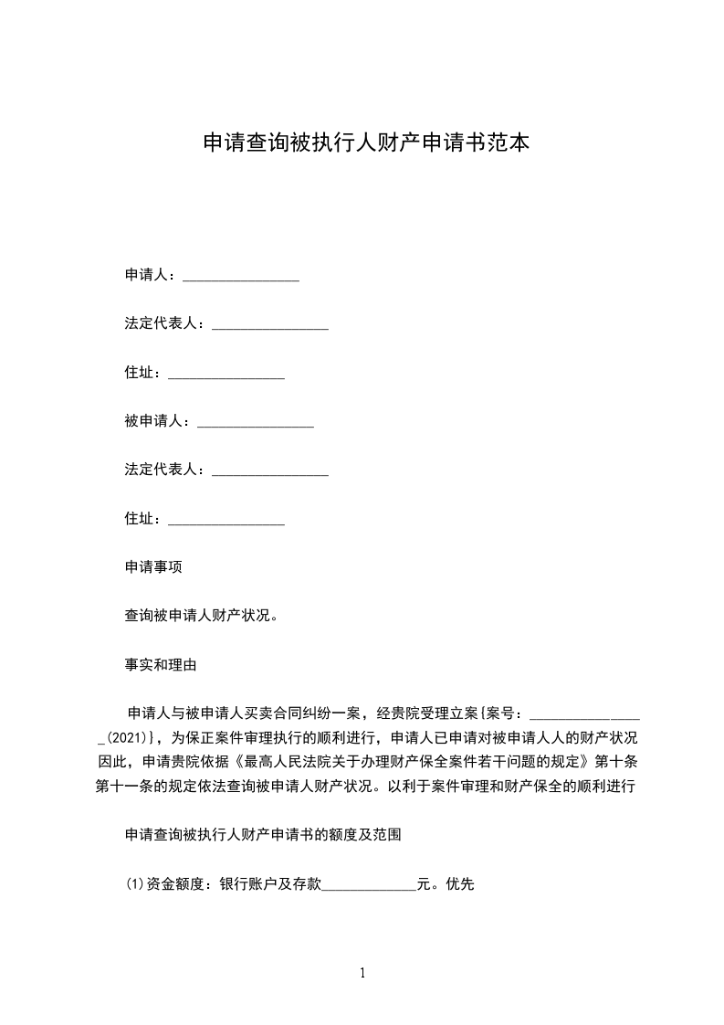 申请人与被申请人买卖合同纠纷一案,经贵院受理立案{案号:________________(2024)},为保正案件审理执行的顺利进行,申请人已申请对被申请人人的财产状况。因此,申请贵院依据《最高人民法院关于办理财产保全案件若干问题的规定》第十条,第十一条的规定依法查询被申请人财产状况。以利于案件审理和财产保全的顺利进行。