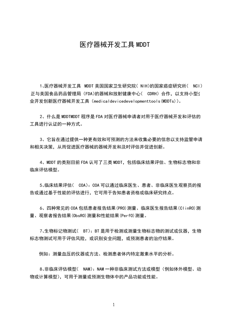1、医疗器械开发工具MDDT美国国家卫生研究院(NIH)的国家癌症研究所(NCI)正与美国食品药品管理局(FDA)的器械和放射健康中心(CDRH)合作,以支持小型企业开发创新医疗器械开发工具(medicaldevicedevelopmenttools(MDDTs))。